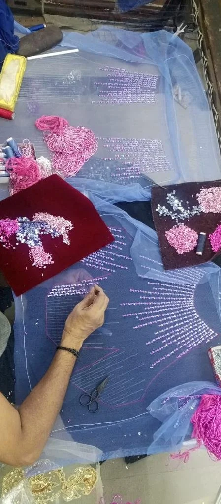 For Deepti, fashion and art were woven into the very fabric of her upbringing in India. Textiles, colors, and the mesmerizing art of sewing danced through her life. It was her visionary mother who skillfully crafted outfits, weaving stories with delicate pleats, intricate appliques, resplendent Zari work, and rhythmic tambour stitches. At just 8 years old, Deepti embarked on her own creative journey, diving into the captivating world of applique and embroidery classes. The techniques and intricate detailing enraptured her heart, igniting a love affair with the art of embroidery and hand beading that would shape her path.